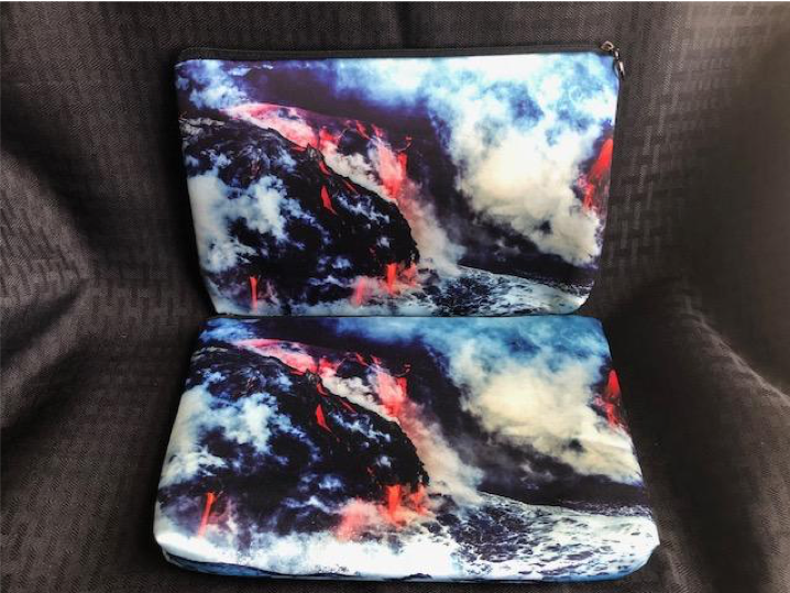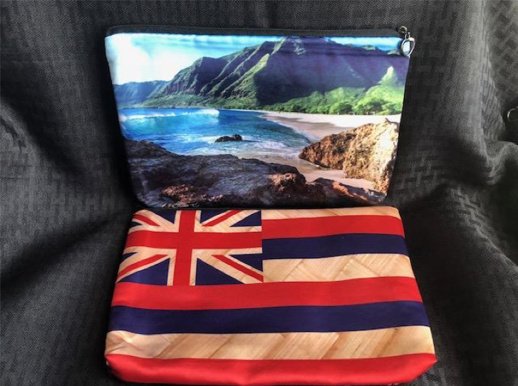 Our Photo Clutches are an Ilihia Hawaii exclusive! Our original images have been Sublimated on durable nylon material, then sewn into clutches measuring approximately 6.5” high x 10” wide. These zippered bags are made with nylon material throughout. There are a couple of pockets on the interior to hold Id’s, credit-cards and other essentials. Interested in having us create a custom design of your own? Custom designed Photo Clutches are $40 each. The minimum order is 50 bags. Email us at ilihiahawaii@gmail.com to discuss design ideas.